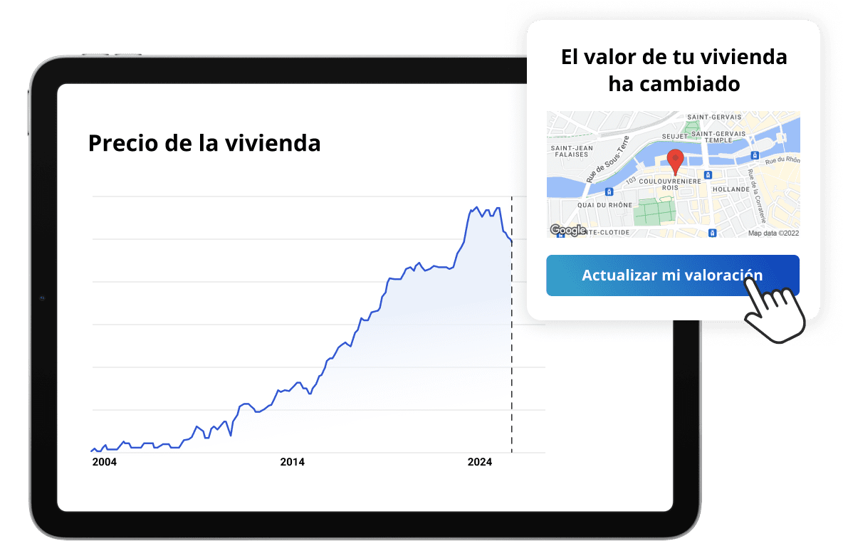 Mantente al día de la evolución del valor de tu vivienda en función de la dinámica del mercado. Con unos pocos clics, recibirás un resultado de la tasación de tu vivienda actualizado cada 3 meses.